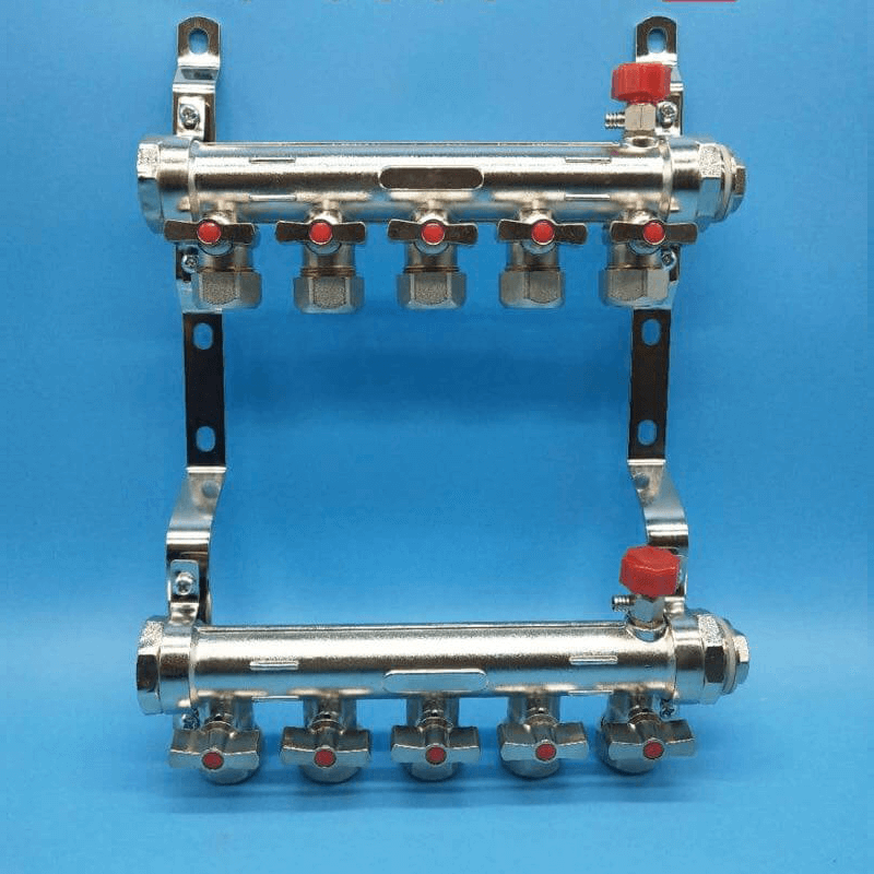 不锈钢分水器表面镀镍,安装于室内,高温使用状况下,环保健康。安全放心;分水器球阀与分水器主体管之间增设密封圈,配合优质厌氧胶密封连接,双重保障,严密安全。