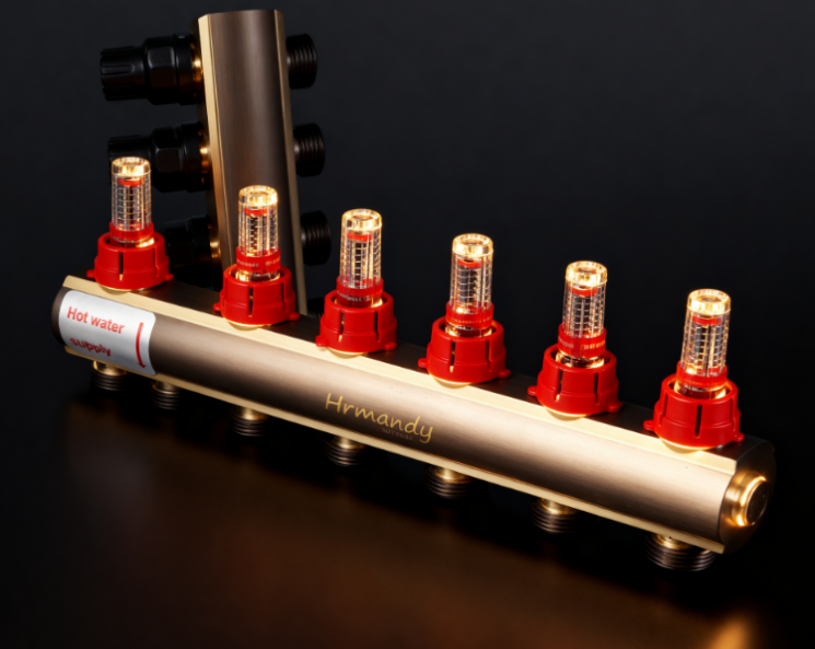 产品特点●原材料采用一体成型黄铜,材料甄选,工艺至臻,使用寿命长 ●表面采用抗氧化处理,杜绝产品加工过程中发生断裂现象,可以防止氧化和铜锈滋生。 ●防阻塞功能:分水器大流量供回水水流通道,有效防止系统里的杂质、泥沙等阻塞水口。自带流量计,实时显数,精准调节各路水量,避免局部冷热不均,供暖均匀节能,室温更舒适;还能及时发现堵截问题,减少维修麻烦。